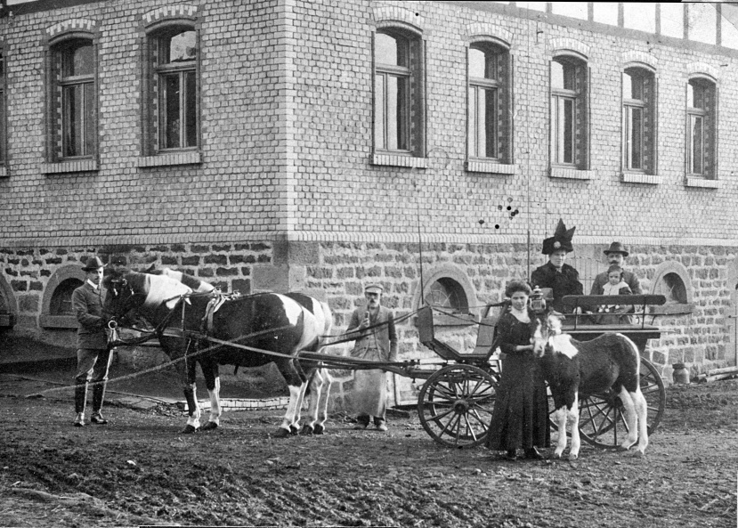 Hans Lieb mit seinem Pferd, unterstützt von dem jungen Werner Schlosser